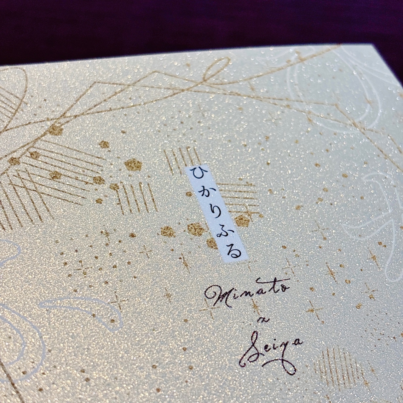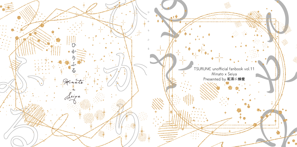 またしても最高装丁!!「おとぎのくにセット」を使用。写真では写せないキラキラさ!やはり人間はキラキラ光るものを見ると「なんかすごい!」という気持ちを抱く。「おとぎのくに」というパステル系メタル紙をグリッターPP加工(追加料金)してもらったんだけど、かんたんに言えばミランダレベル100になる。ゴールド系はこの「てんのはごろも」と「ようせいのこな」があり、どっちにするか最後まで迷ってシャンパンゴールドっぽいこちらに。「ようせいのこな」はローズゴールドっぽい。新しい紙なのか実際使ってる人も少なく、作例が少なかった。この紙にグリッターPP、超おすすめ!マジでかわいい!!手触りはザラっとします!2冊目と同じカプが大人になった話だったので、表紙の紙もミランダ→グリッターPPでミランダレベル100になっており、良い。反省点は、タイトルロゴ以外の白押さえはいらなかったなーというところ。