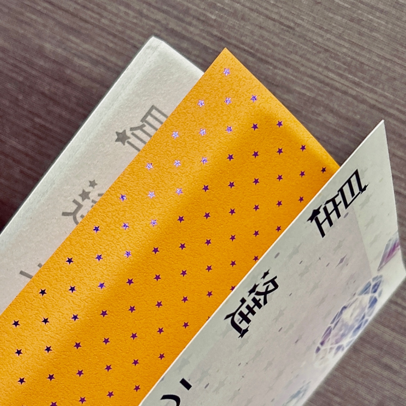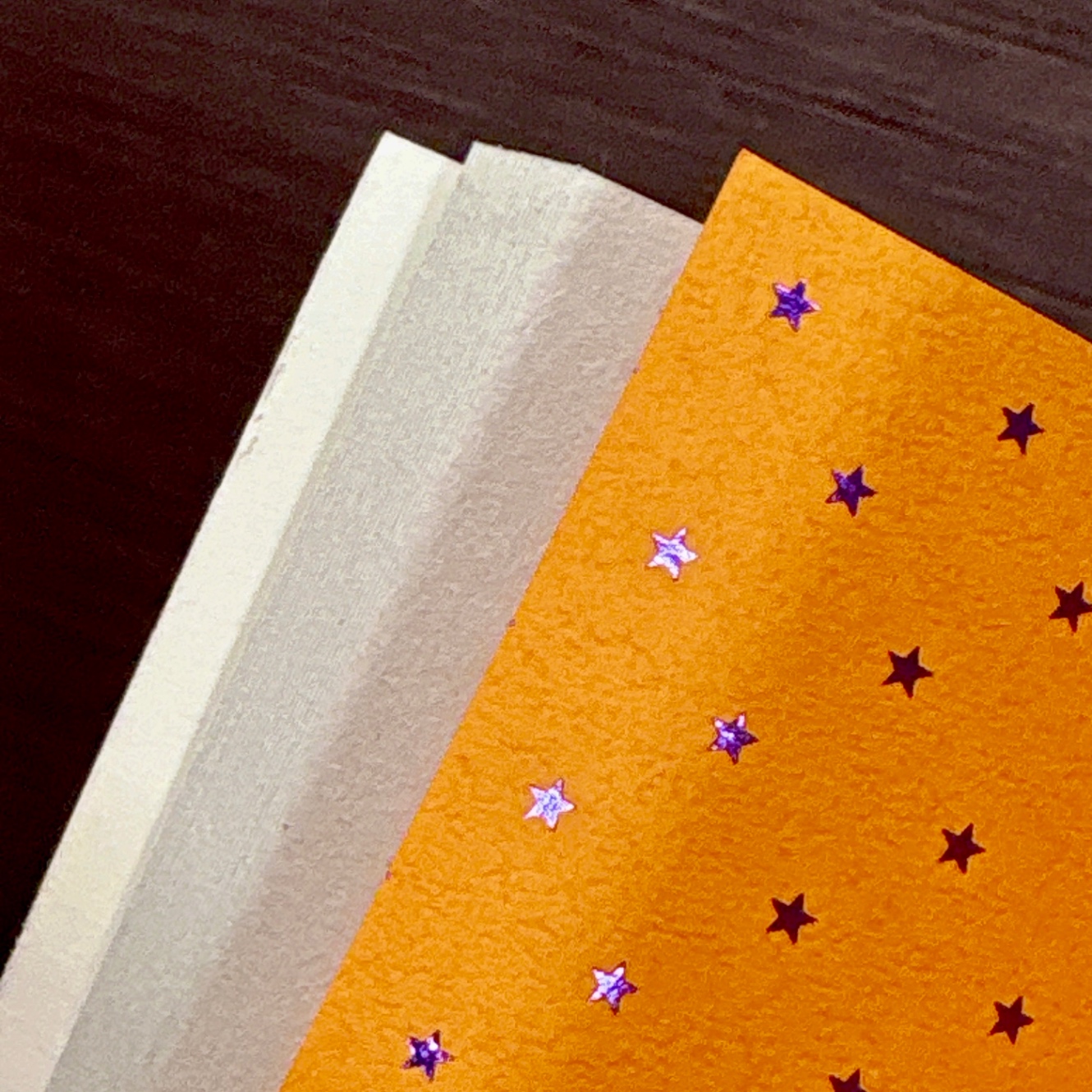 遊び紙:箔押し遊び紙 オレンジ/星柄 パープル箔