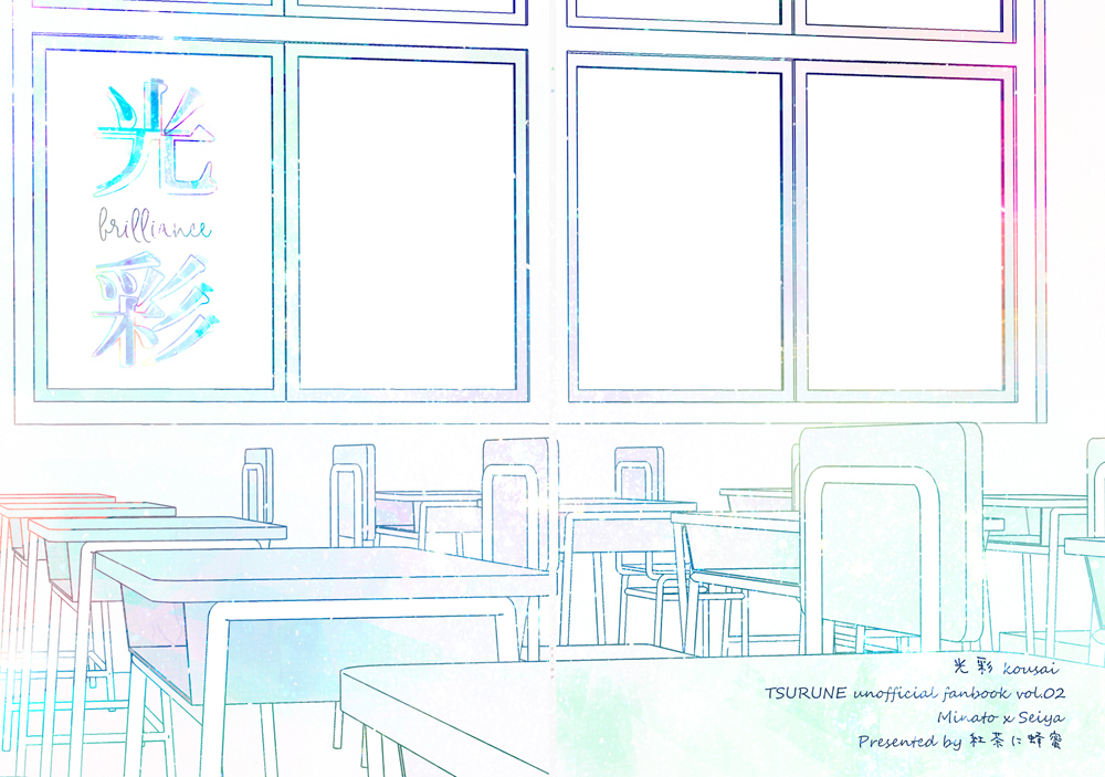 これはなんの変哲もない。ただミランダでキラキラしている(写真ではわかりにくい)。遊び紙は攻めのメンカラで。ダイヤで出した本は9割が同じカプだったけど、ツルネはなんと4つ(5つ)のカプをローテーション的に出しています。このカプのイメージは「青春の光」。San24は同人印刷業を廃業してしまい悲しい😭