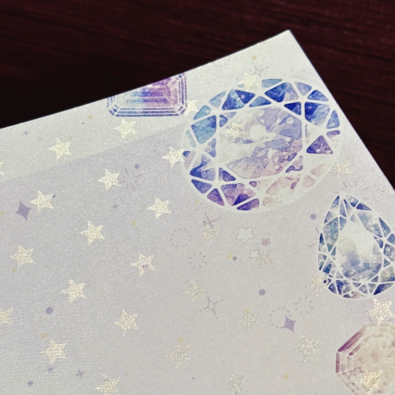 加工:グリッターPP加工、変形断裁(A5正方形)