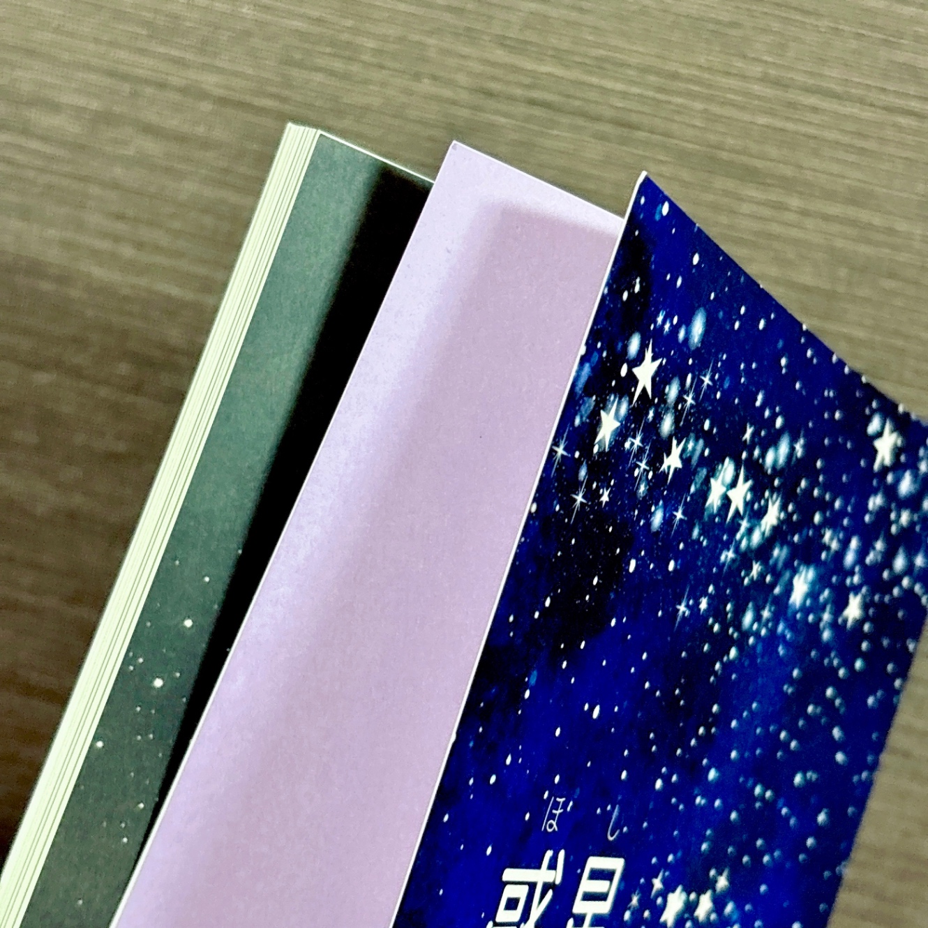加工:クリアPP加工、擬似小口染め(スターダスト)、本文インク替え(サックスブルー)
