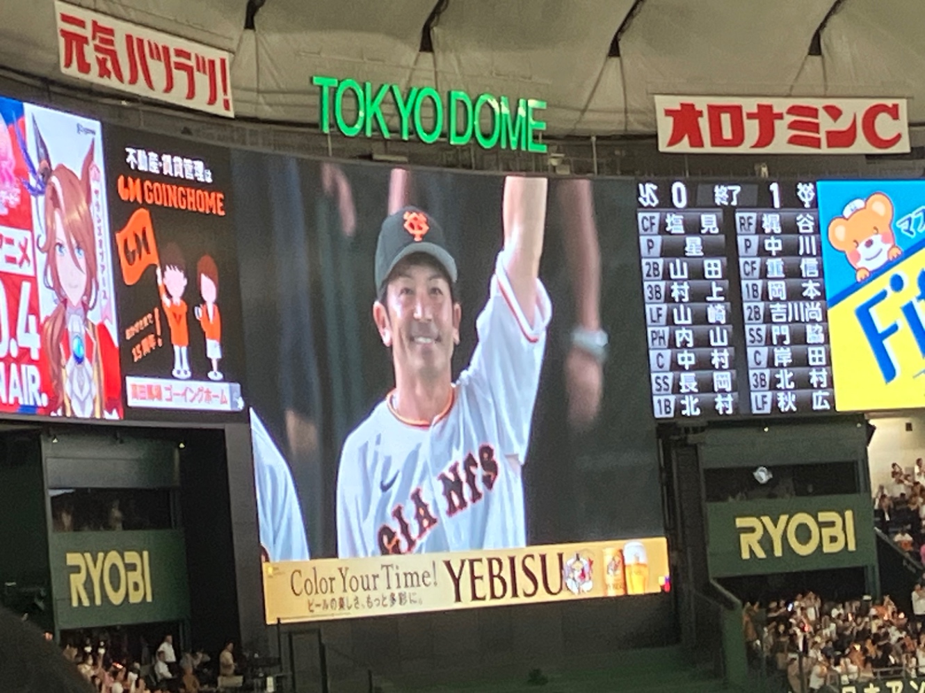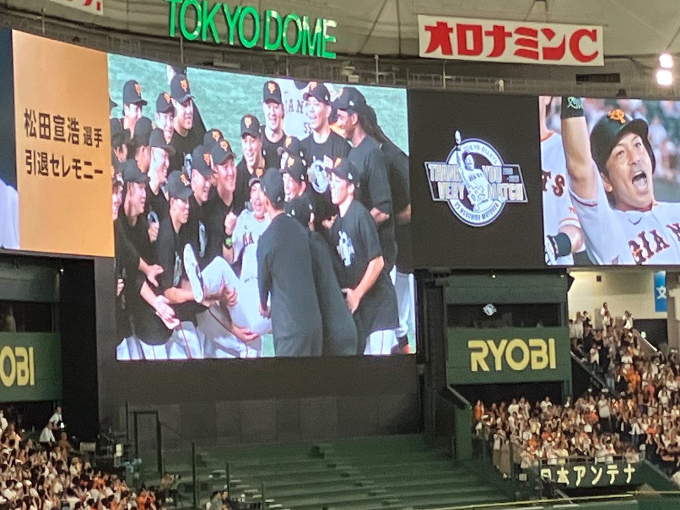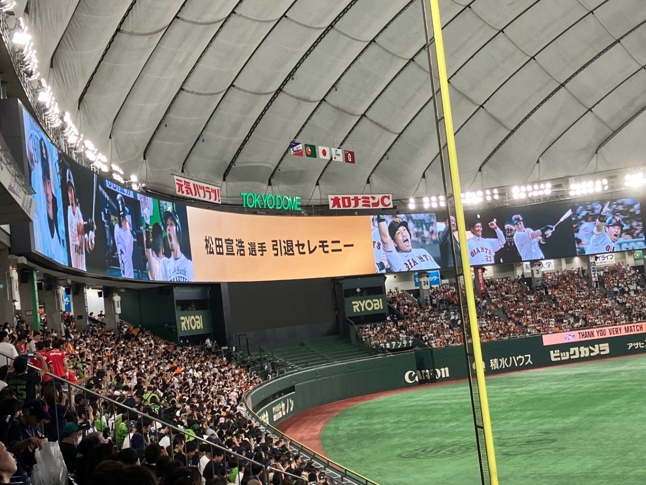そして最後はもちろん王さんだったわけなんだけど、先に書いたように往年の巨人ファンも周りにいたのでこう…どよめきがそれなりにあった。王さんのメッセージめちゃくちゃよかった…。08年にけが人続出だったシーズン、ゆいいつ松田選手だけ全試合出場をしていて…王さんに「松田は元気だけが取り柄」みたいなことを言われていたな…とか。