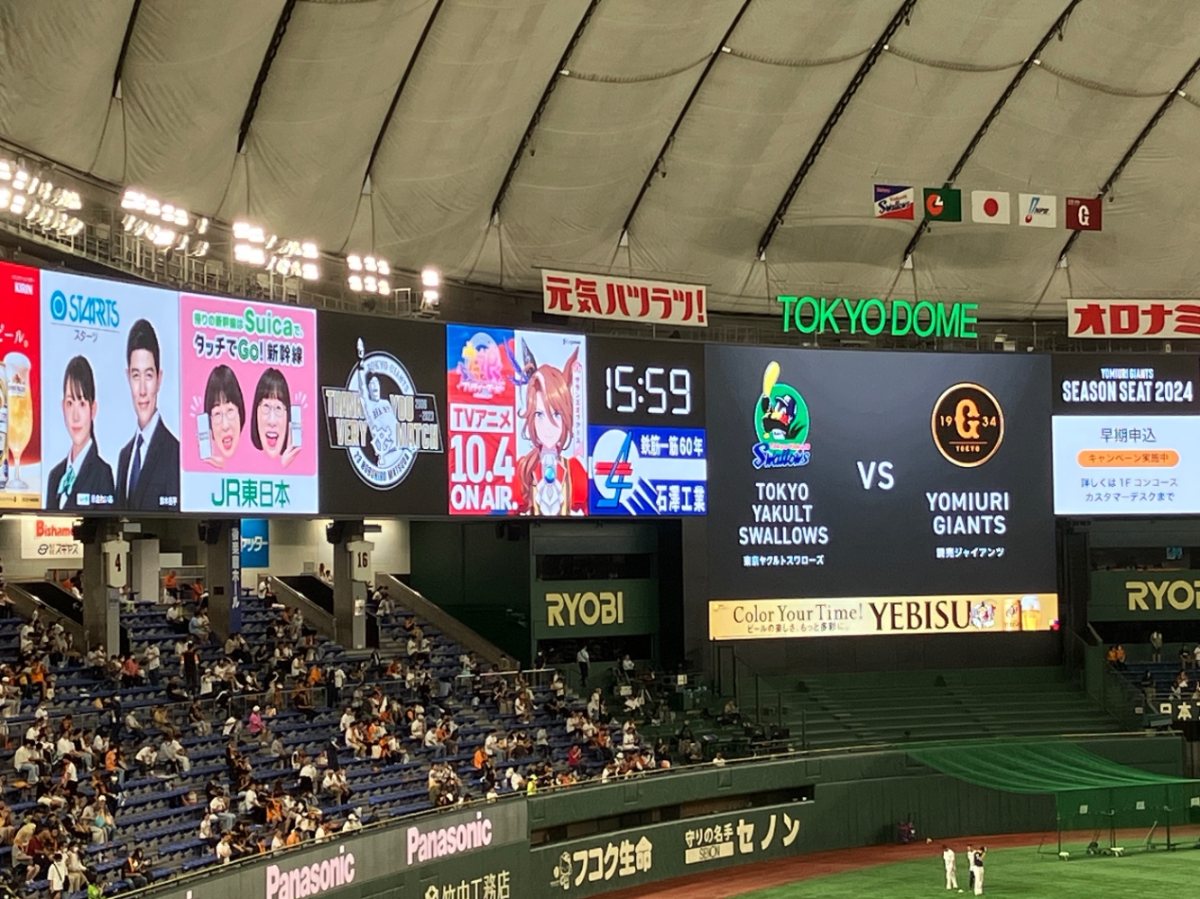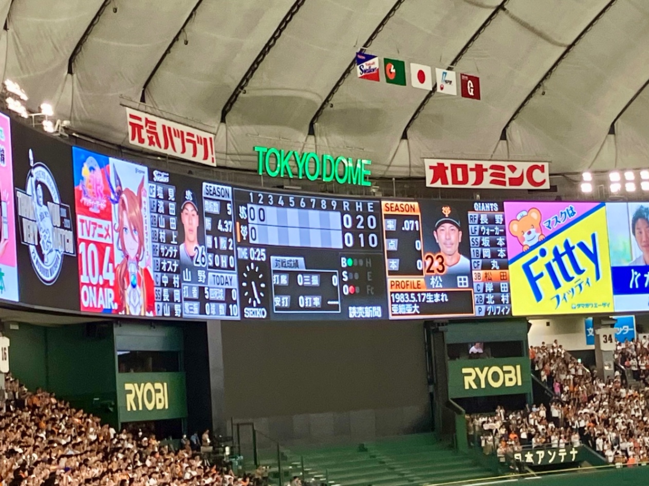 というか前々から巨人ファンが「東京ドームはもう古いからさ…」みたいな自虐をしてるのを見かけることがちょくちょくあったので、そうなのか…って思いながら行ったんだけど思ってたよりめっちゃきれいで巨人ファンの「古い」の基準とは…?!ってなった。トイレもきれいだし(まだ言う)