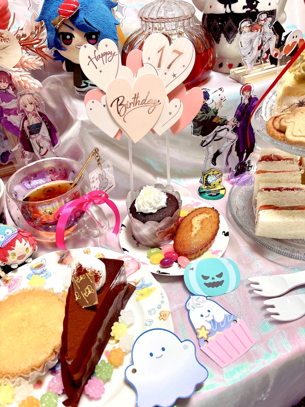 飾り付けも、本当はもっと好きなキャラのグッズを並べたかった!このあたりはマジで、事前の計画の甘さというか、ここまで考えとかないといけなかったんだな〜という次回からの改善点の話にはなる。