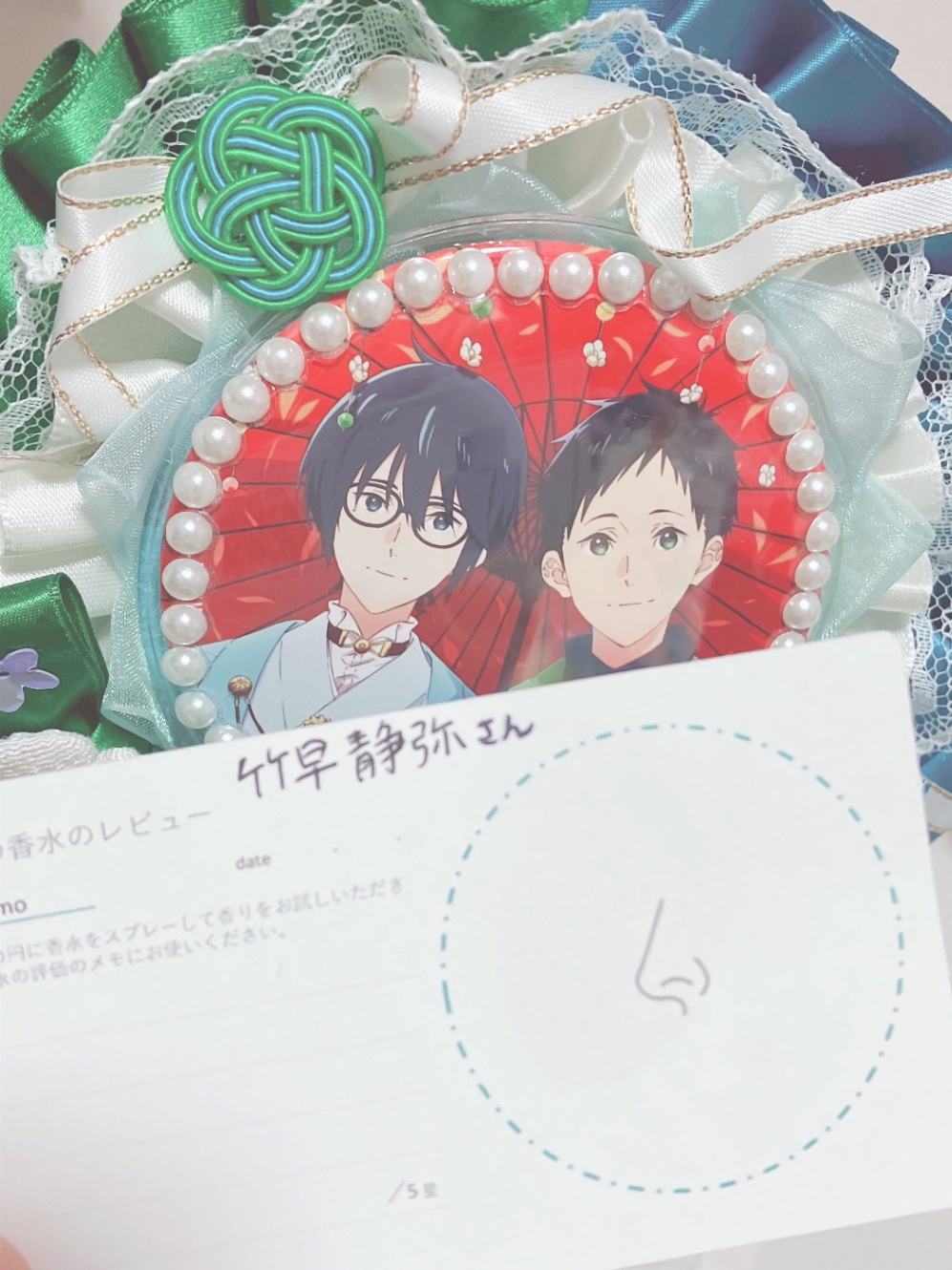あとやっぱカードに他人の字で推しの名前が書かれてるの、嬉しすぎる。てかムエットに吹き付けたやつはいつまでも草っぽさ(たぶんこれがカモミール)が残ってたので肌に乗せたときの香りって本当に変わるんだな…と思った。