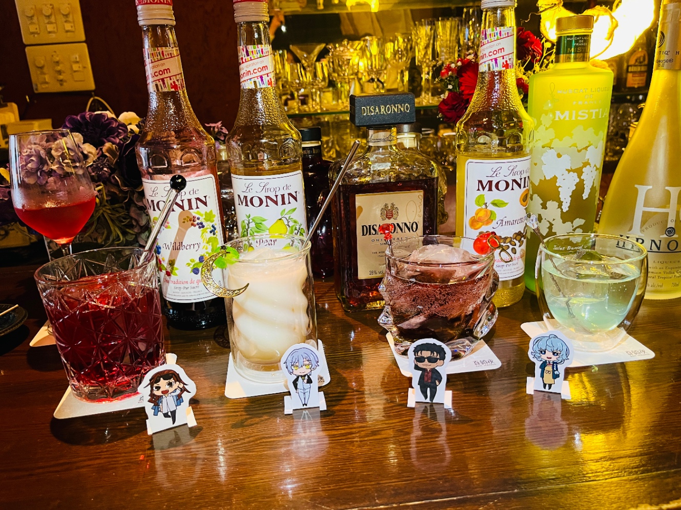 公演型TRPG『破邪神鏡』に登場するNPC風雲力雄のイメージカクテルコラボを1月末までやっていたので、同シナリオ探索者の弓田ちゃん、福ちゃん、月白愛のイメージカクテルを作りに行ってきました。
