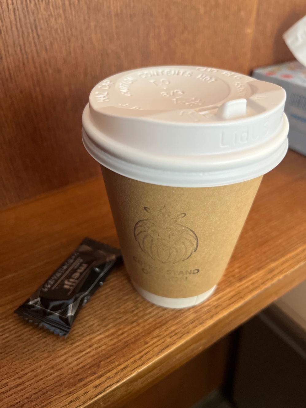 小さな店内で外にテラス席があるこの店は来るたびに常連っぽい人たちが話していて和やかだ。今日は寒いのでカフェモカを注文した。