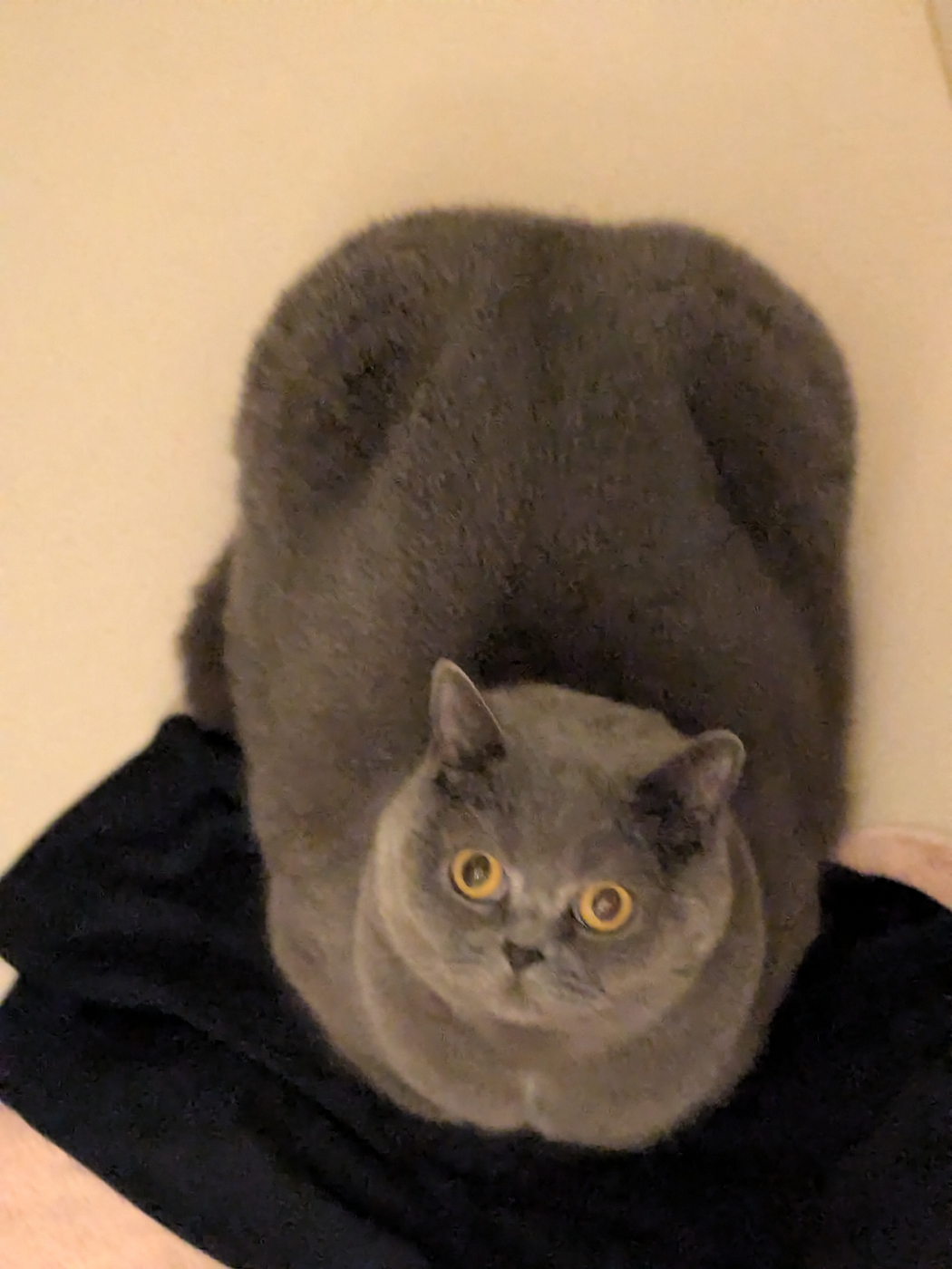 風呂上がりを待ってくれていた猫。四角すぎる