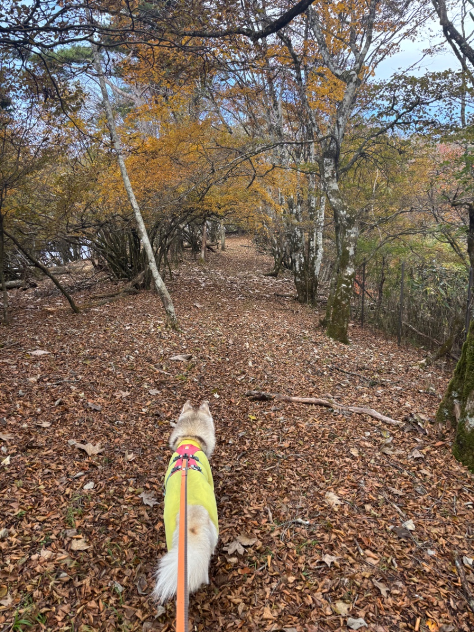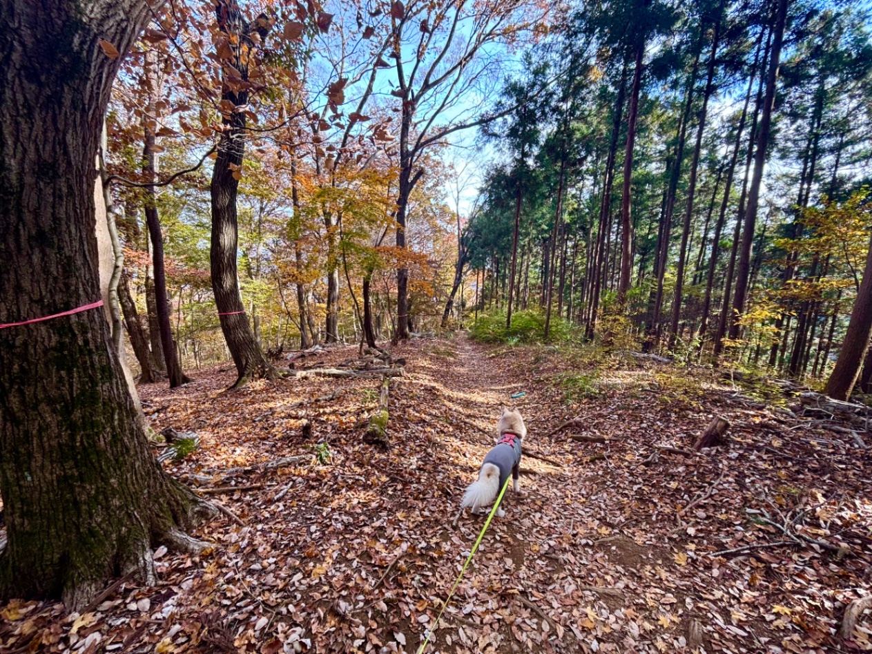 大室山に登ったときよりも季節が進み、紅葉は落ち葉になってしまっていました。しかし、フカフカの地面で歩きやすくぽかぽか陽気の中の登山となりました。