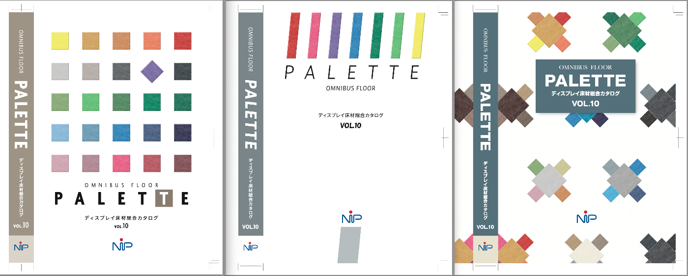 この初期案のとおり、当初はフォントの傾きに合わせてチップのアートワークを傾けていましたが、見本帳のタイトルは前号(vol.9)までの書体に戻して欲しいということで、チップの傾きはそのままに、書体だけ変えました。