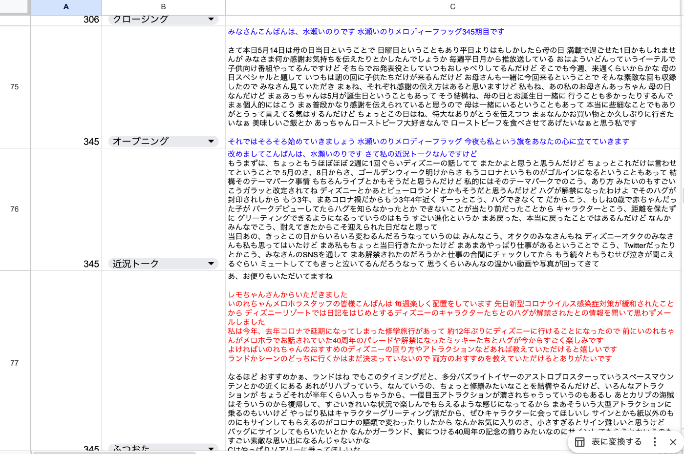 以前、ポッドキャストサービスのコンテンツを作るためにラジオのコーナー構成・お便りの知見を集めていた時に↓のように部分的に校正作業をしたのですが、途方もない...