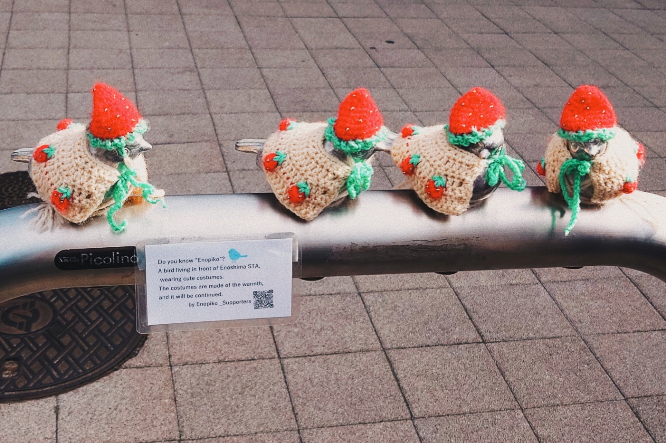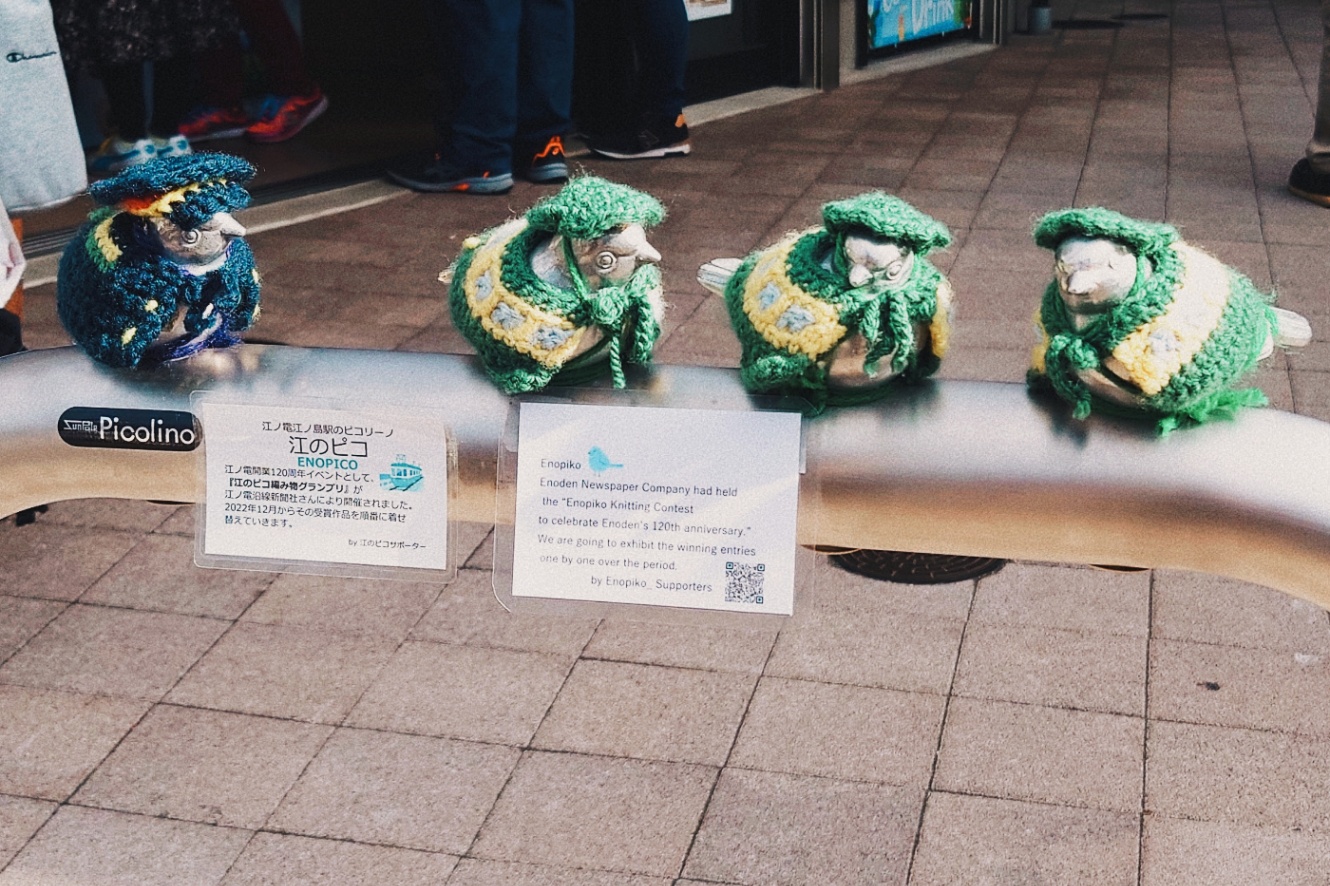 江ノ島駅で降りた時にいたかわいいもの達。江のピコちゃん。毎月お洋服が違うそう!これは11月に行った時の写真。いちごと江ノ電と車掌さんのモチーフみたい。かわいい〜