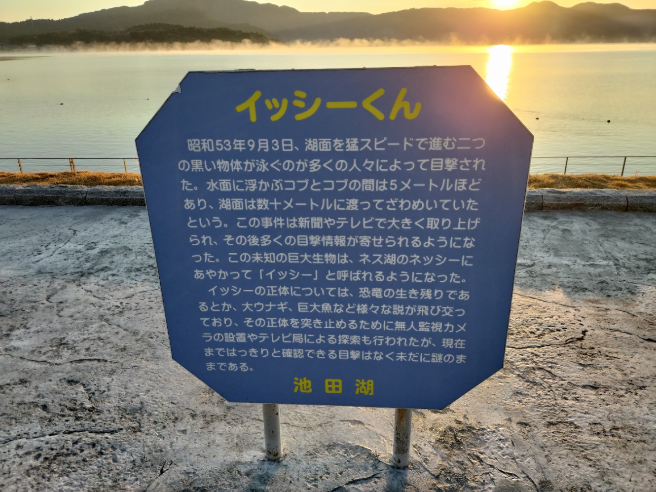 池田湖には「イッシー」という巨大未確認生物がいるかもしれないと噂されている場所です。ネス湖のネッシーにあやかった名付け方です。