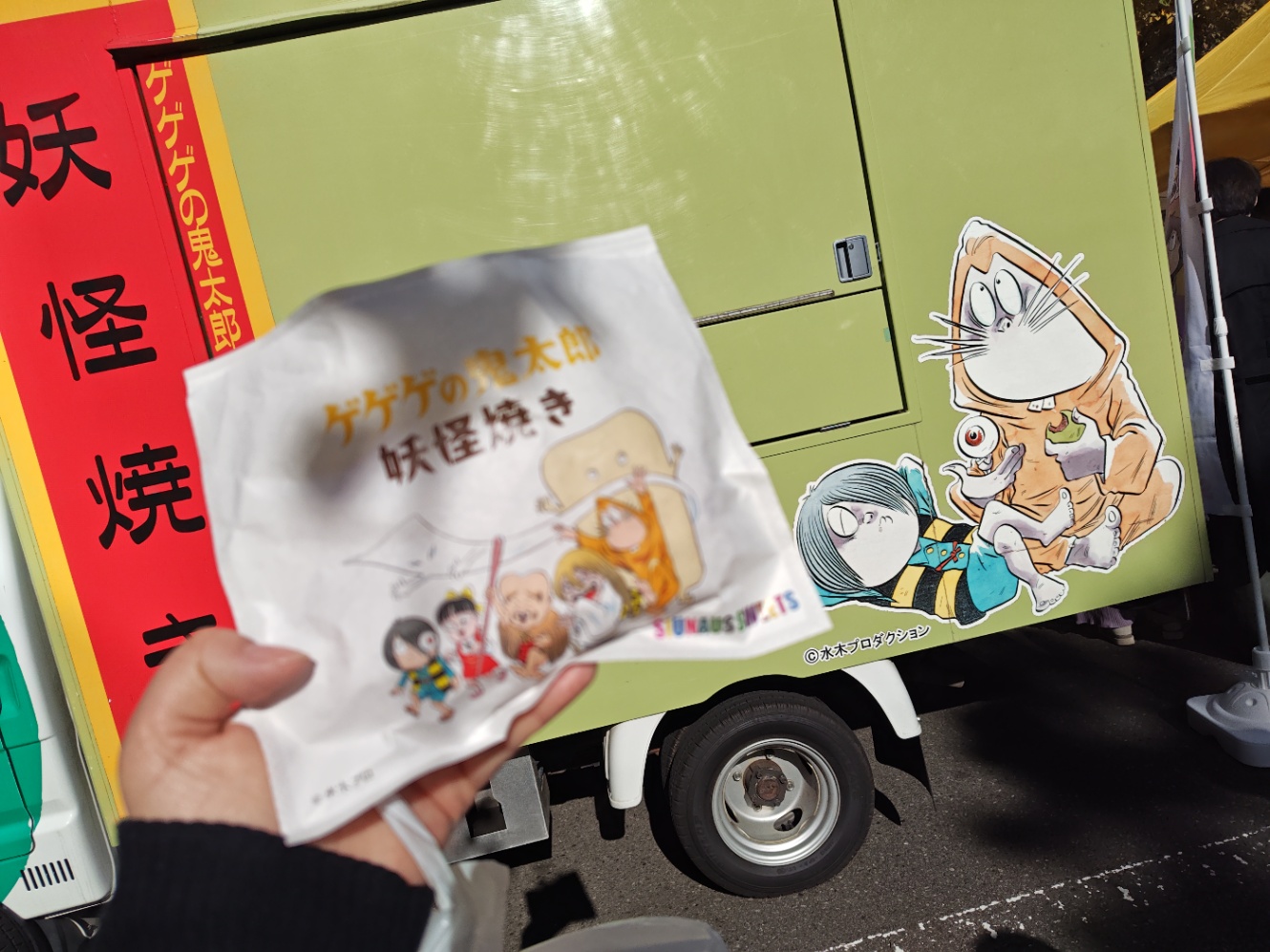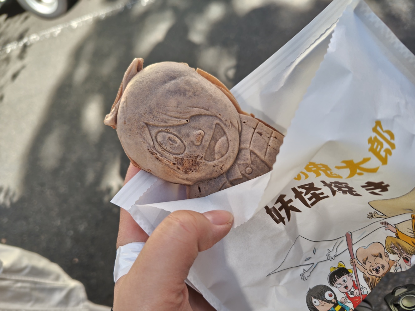 妖怪焼き…………………思ってたより、デカイ!!モチモチしてうまいけど、デカいので、予想外に腹にたまる………カレーを挟むか、一つにすれば良かったのだなと。でも美味しかったので問題ないです!