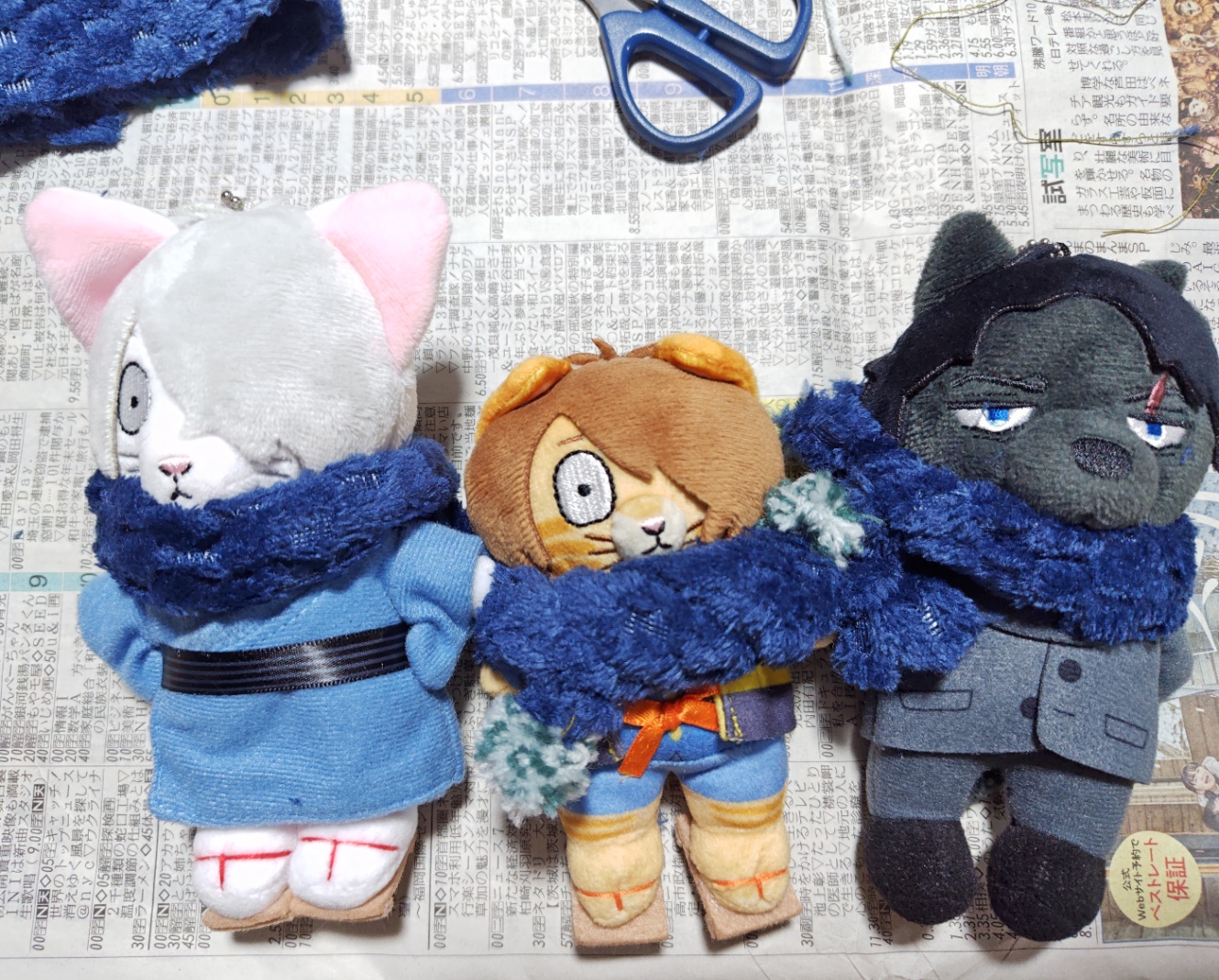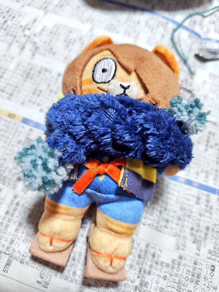このマフラーっぽいものは出発前に思いつき、結局金曜夜とかに完成しました。水曜に突如編み物しようとして惨敗した苦い思い出もありますが、突貫だけどこうして見るとなんか、あったかくさせて上げられたのが嬉しいな〜と思います。編み物…やってみたいが…。