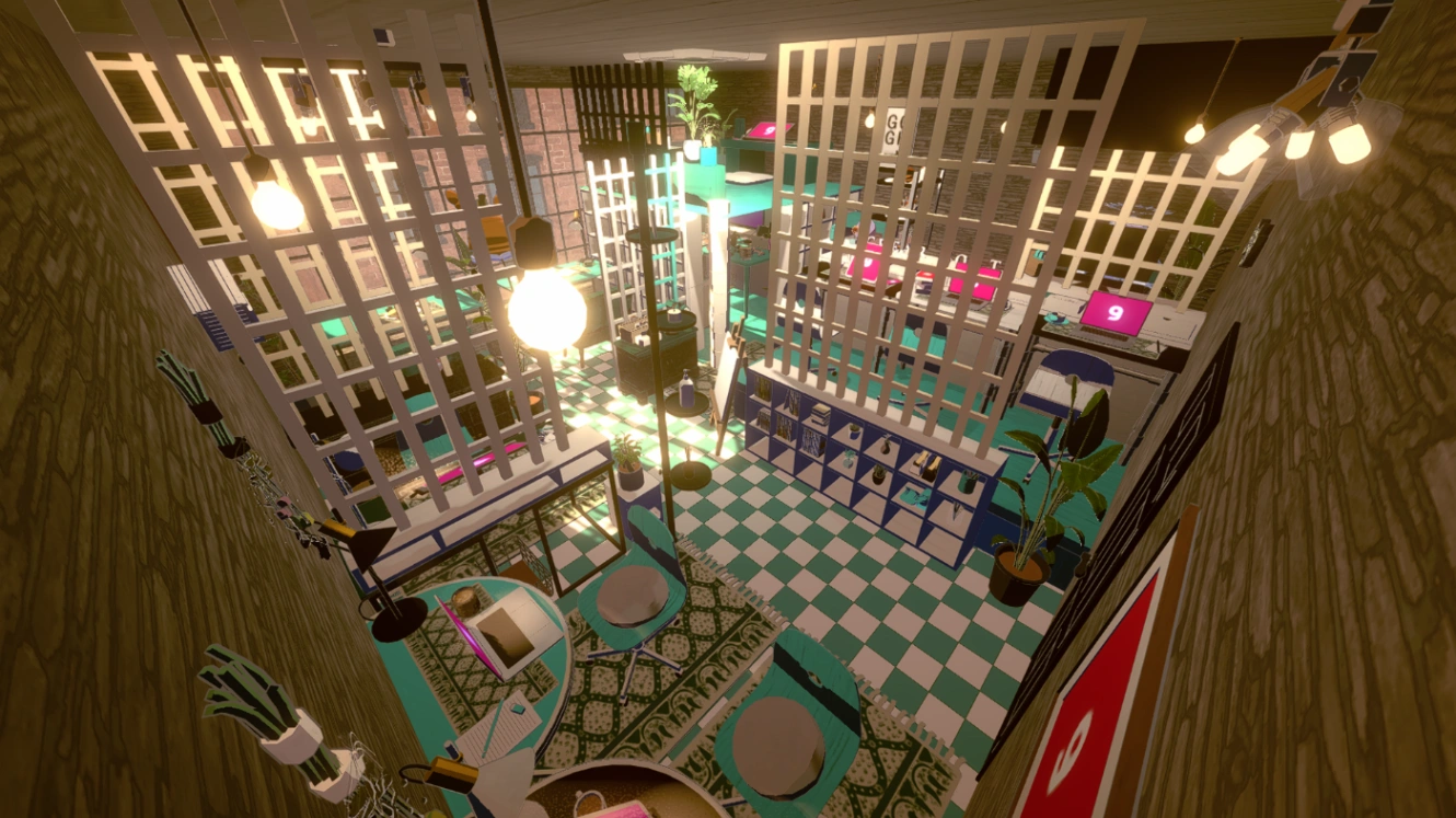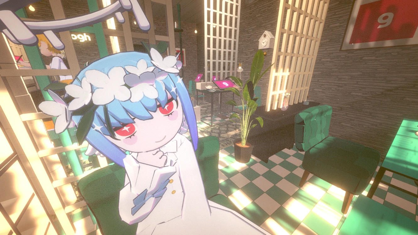 アバターが作業したりチルしたりする部屋も作れます。これは私が習作で作ってみたカフェみたいなお部屋。