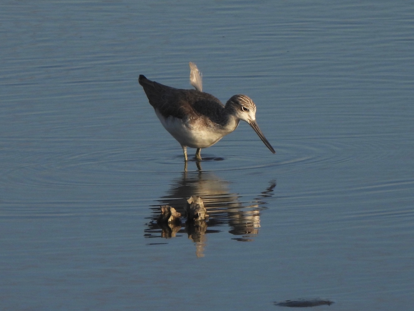 たぶんアオアシシギ…シギチは全然自信ない。背中に抜けかけの羽がぴょんと出ている。アオアシシギは群れでいた。