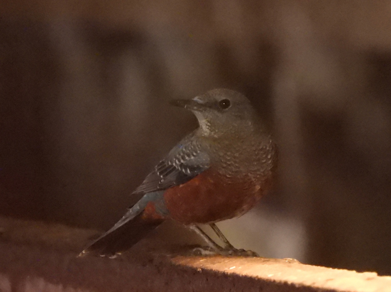 肥料を作る小屋?にいたイソヒヨドリ。赤が綺麗だね。