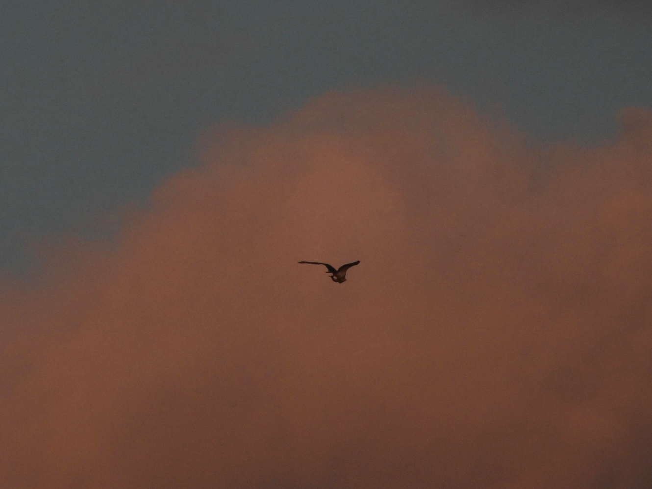 かなり遠いけど、日が昇る前から獲物を捕まえたミサゴ。結構大きい魚、鯛かな。