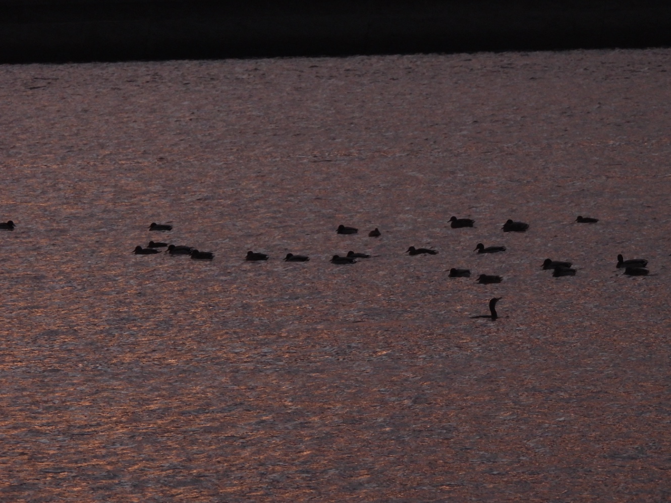 水鳥たちがぞろぞろと出勤してくる。