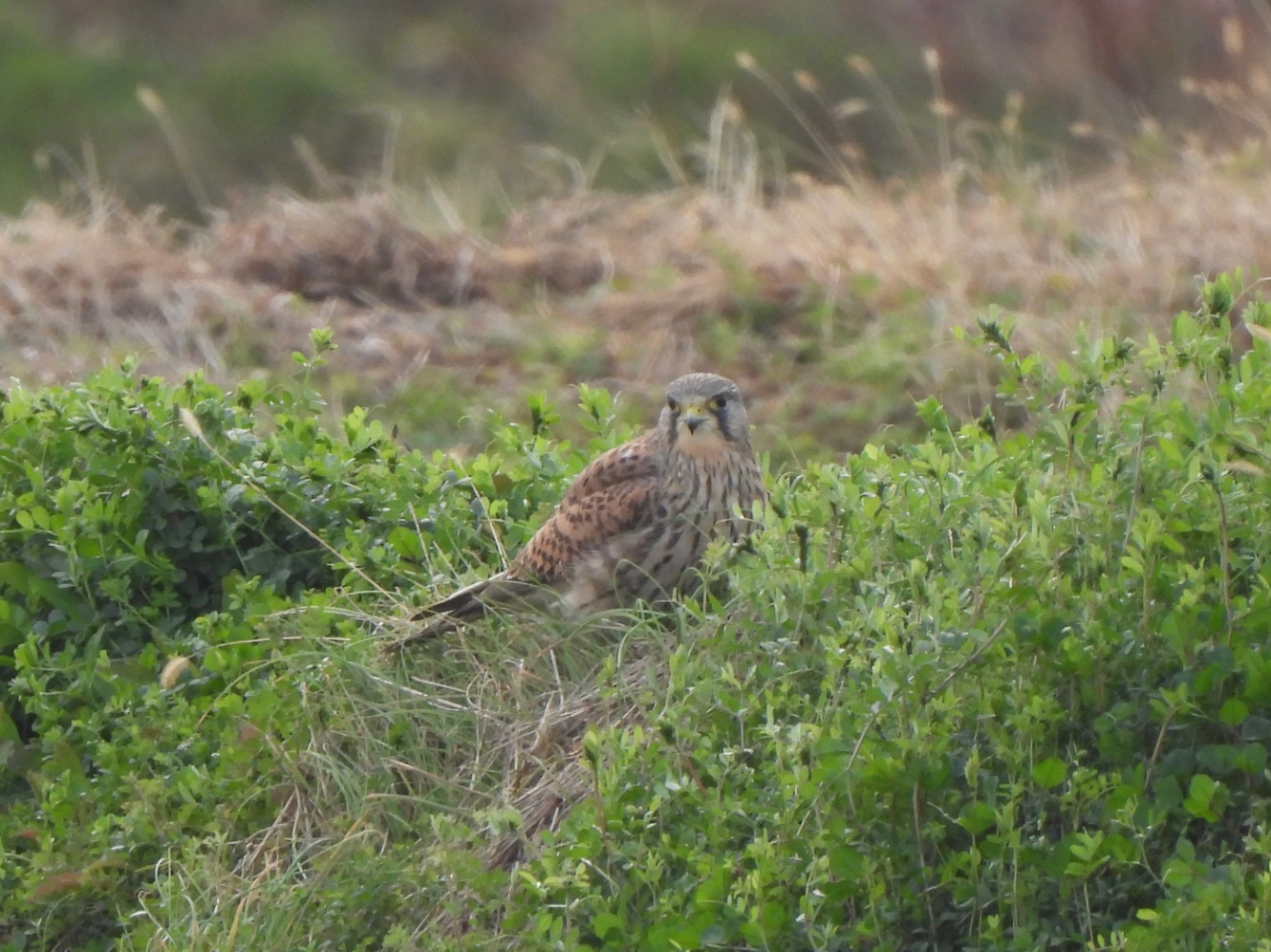 家の近くまで帰ってきたらチョウゲンボウがいた。畑で朝食中。