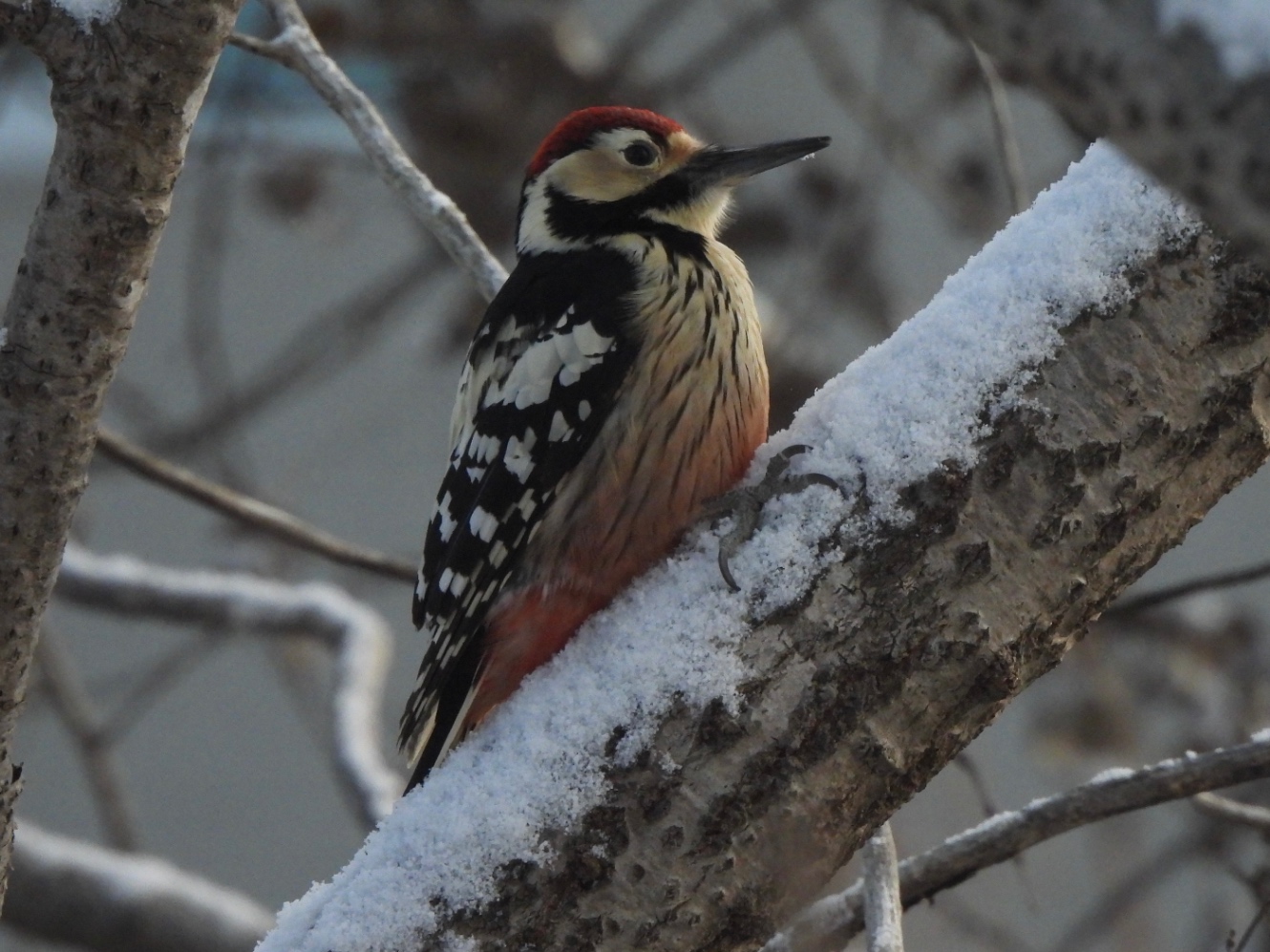 最近よく見るオオアカゲラ。すごく近くにとまる。