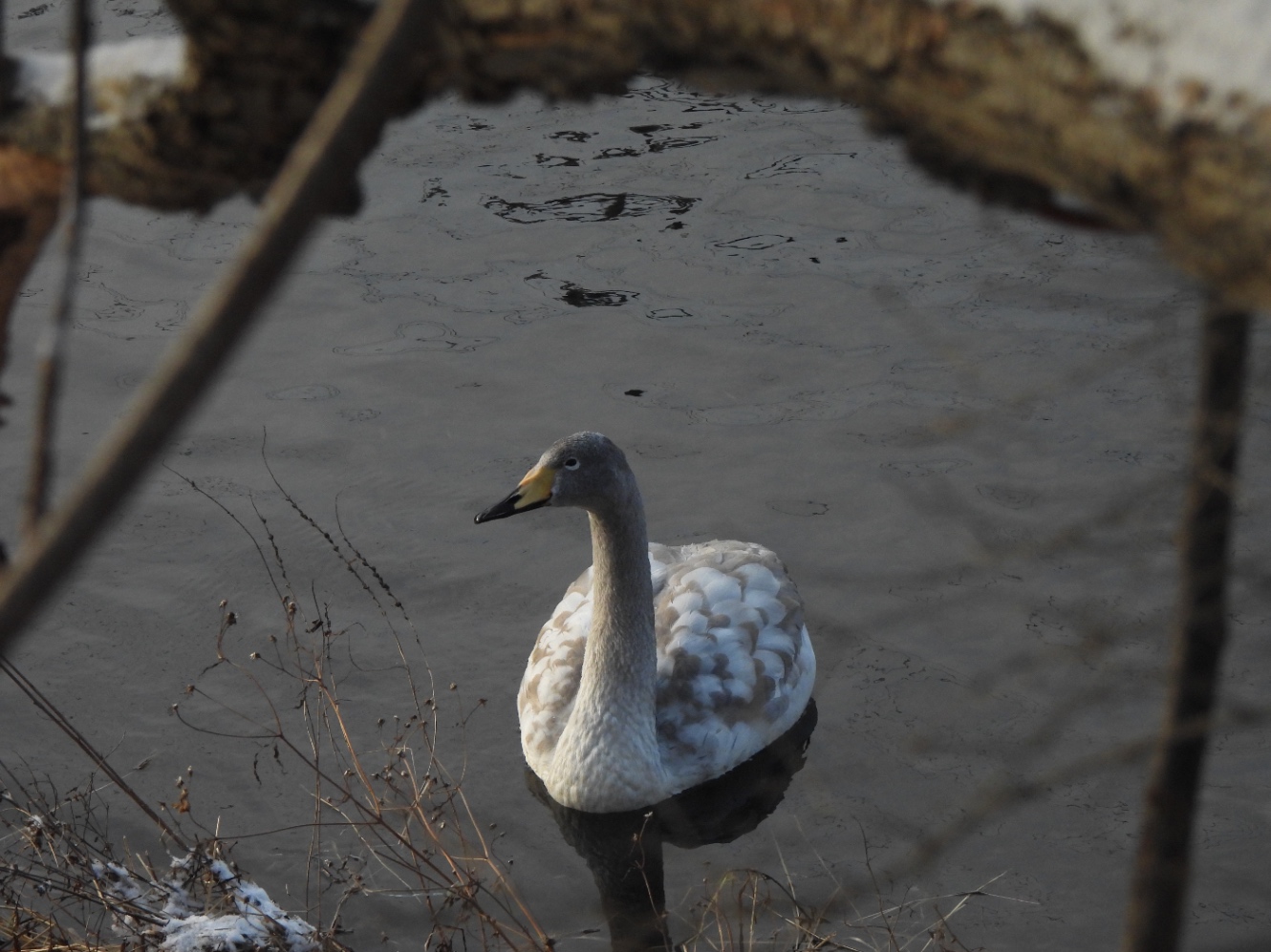 オオハクチョウの幼鳥がいた。灰色と白のまだらがかっこいい。