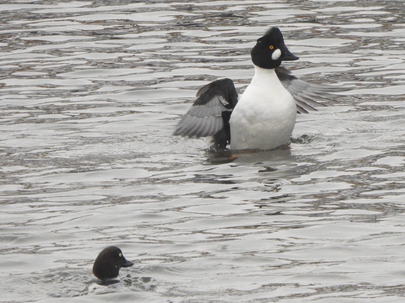 ホオジロガモ成鳥ペア。こっちもお腹を見せてくれた。