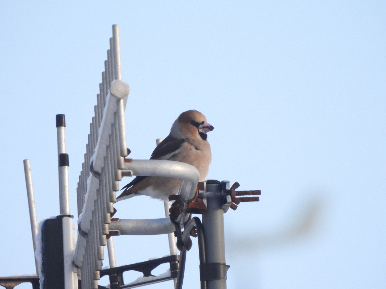 鳩が3羽も小さい木に集まっていて、ヒヨドリも狙っていたので気になり近づいたらシメも飛び出てきた。