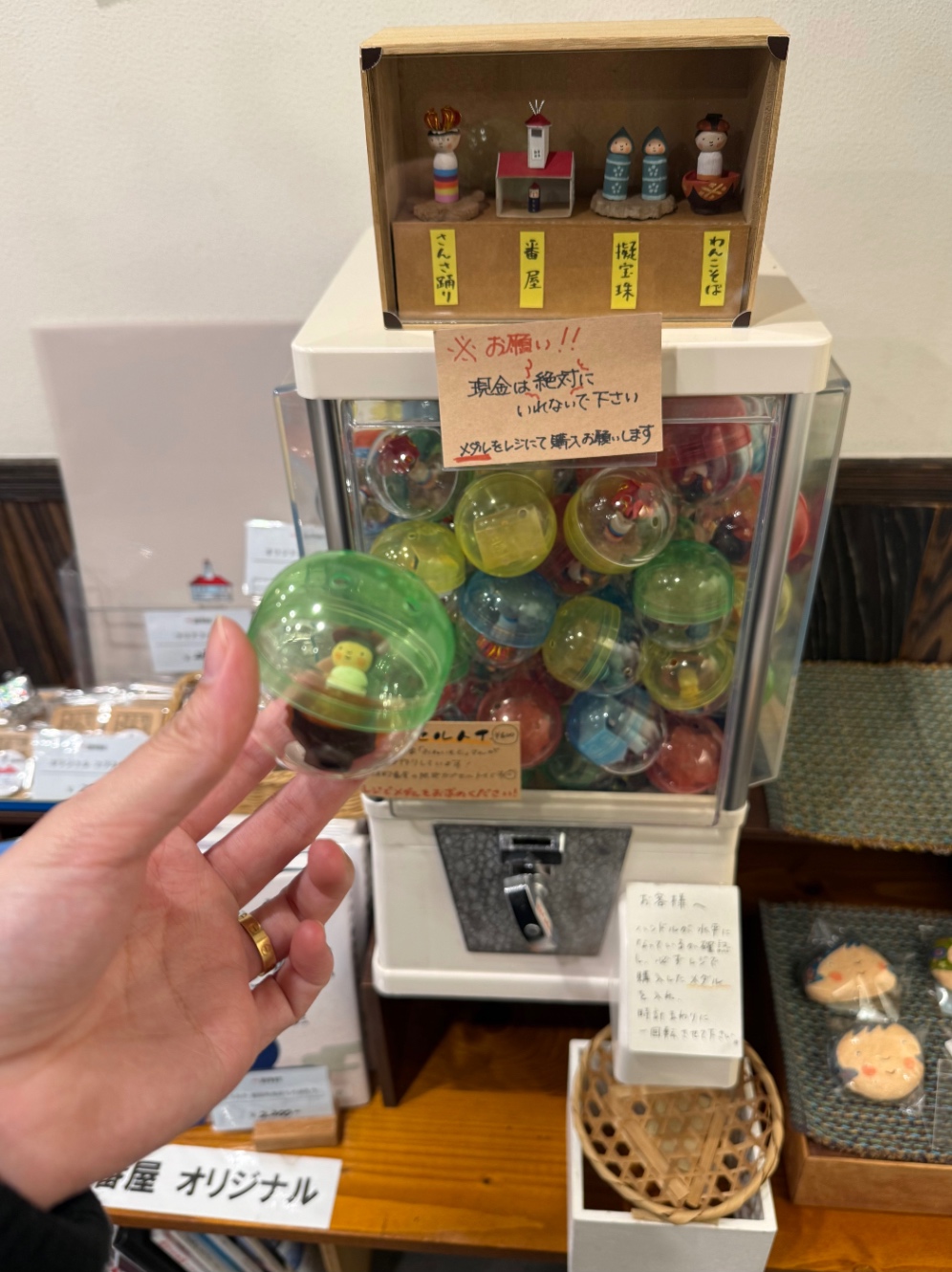 可愛いガチャガチャがあったので回してみると、わんこそばの人が出てきた。可愛い!