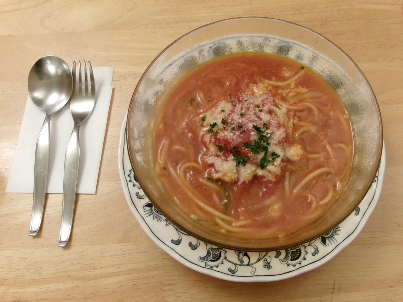 晩御飯のお店・モンタンに辿り着く。アラモンタンはトマトの旨味が凝縮されたスープの中にパスタが入っているものだった。後味はちょっと辛い。ナポリタンを想像してたけど、全然違う味。もっとトマト~って感じ。スープだけ大盛りにできるらしい。すればよかった…スープうますぎ。