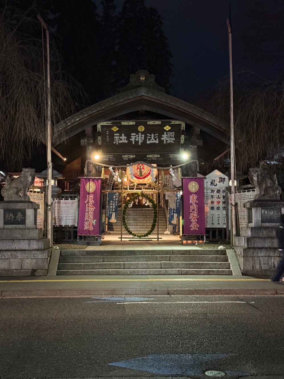 アラモンタンを食べる前に櫻山神社へ。年末年始の巫女バイトがもう始まってるのか、沢山の巫女さんがいた。