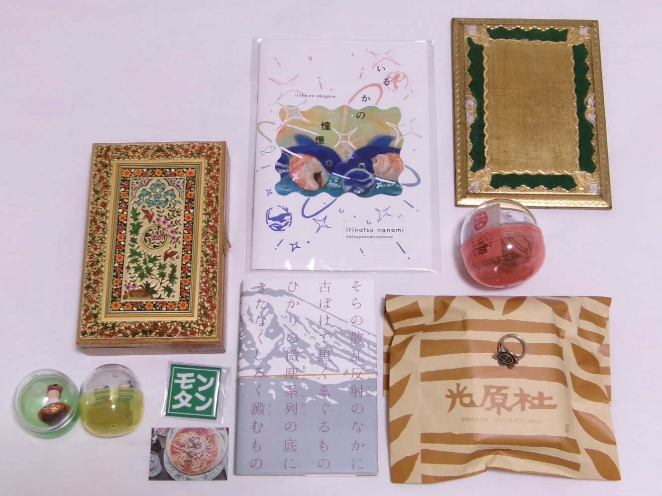 今日の購入品。右上がスペインの板。真ん中下がブックカバー。