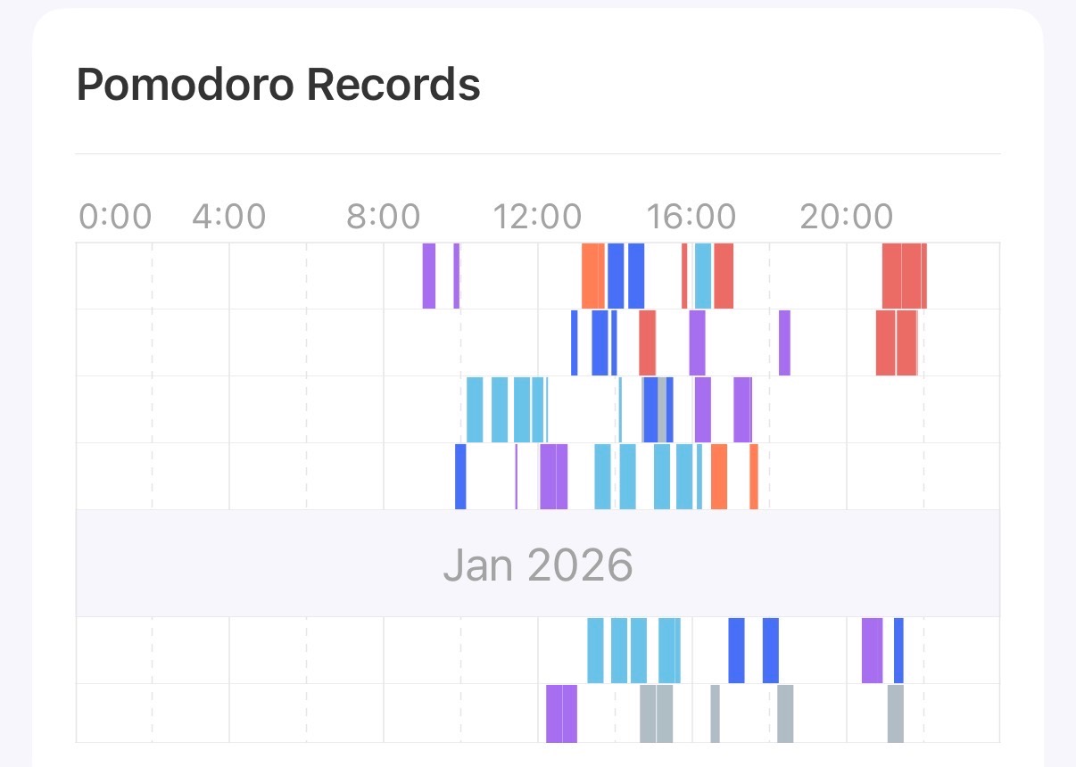 2/1とかはやってたんだろうけど、2/2はお昼に空白が見られたり、2/3はポモドーロ同士の間隔が広い、今日は15時付近に謎の空白が見られる、みたいな。