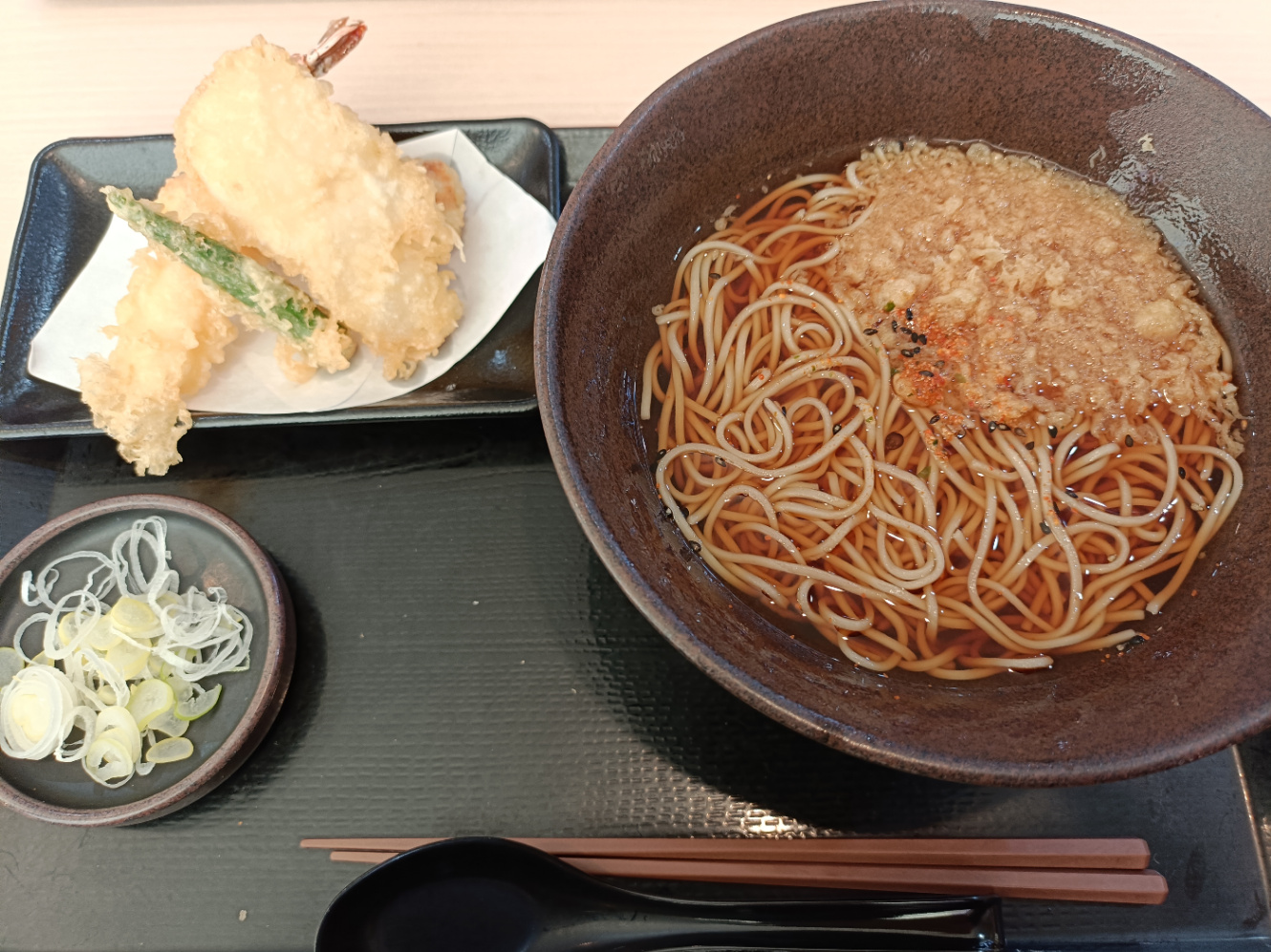 私が行った時はモーニングの時間ではなかったので、お蕎麦と天ぷらのセットにした。