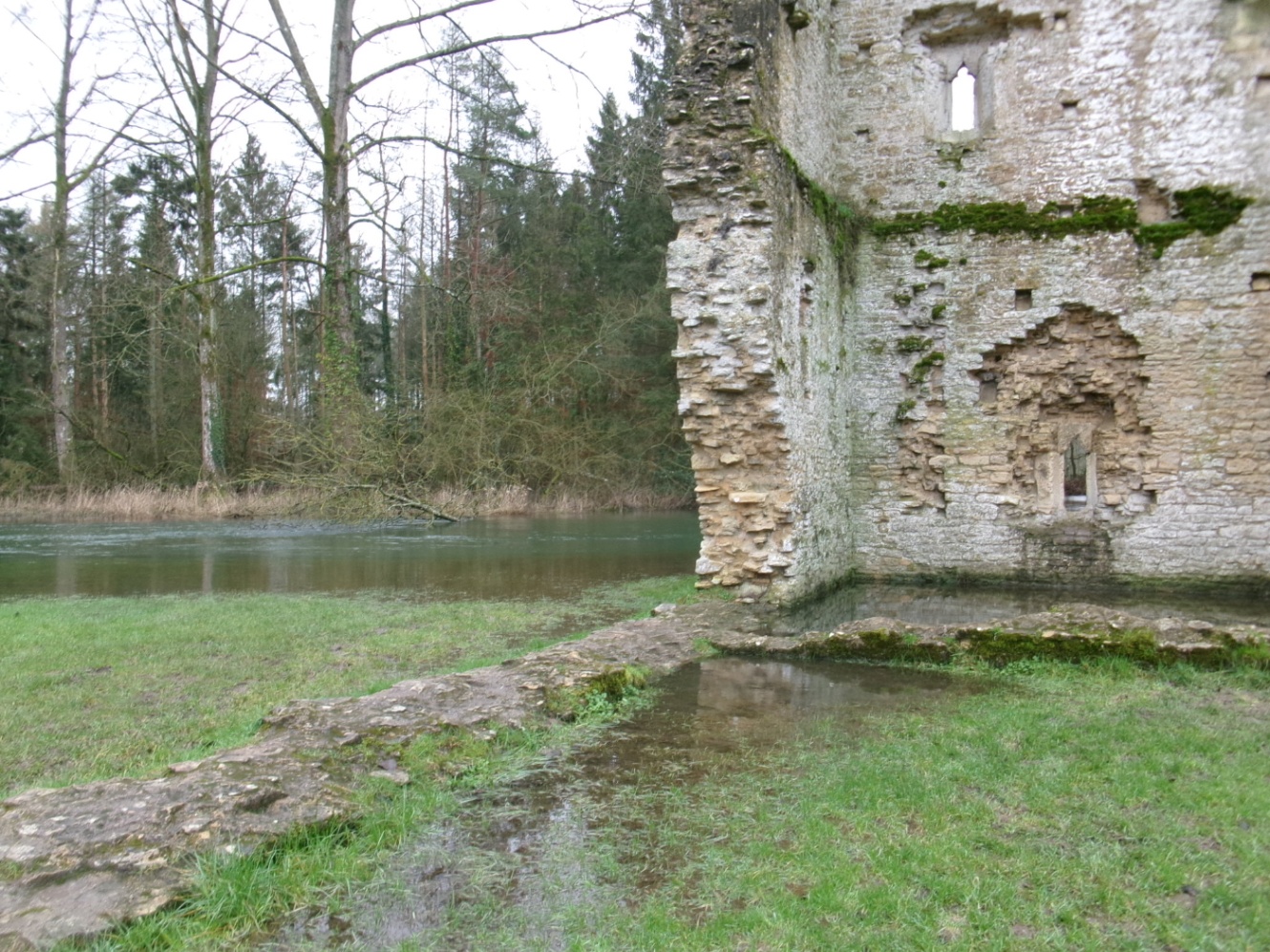 雨で川が増水して、遺跡の中までびたびたに