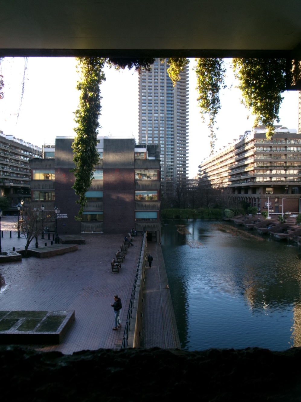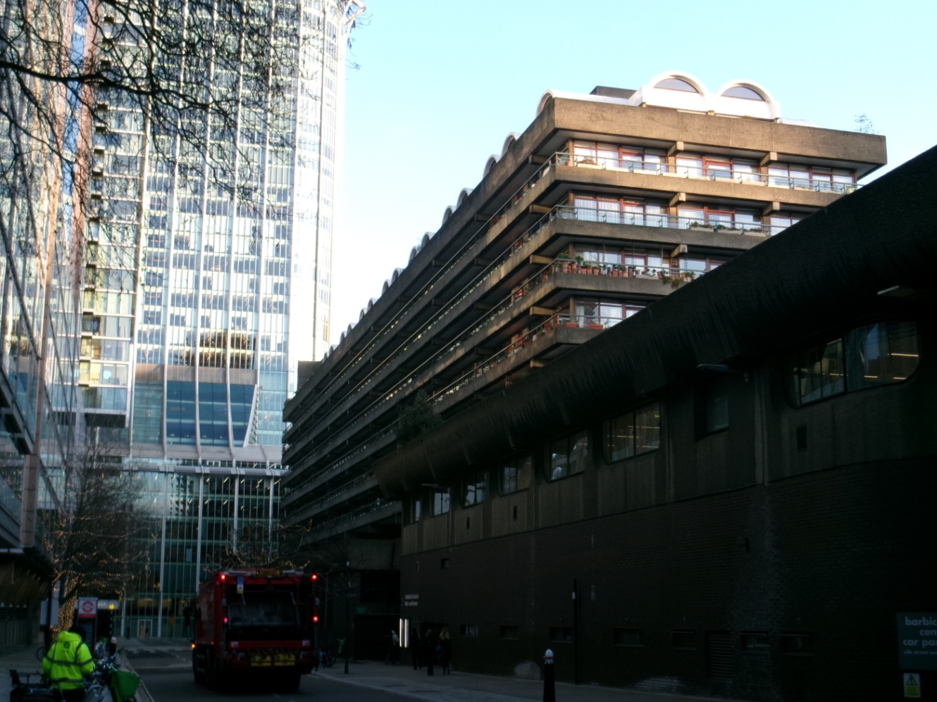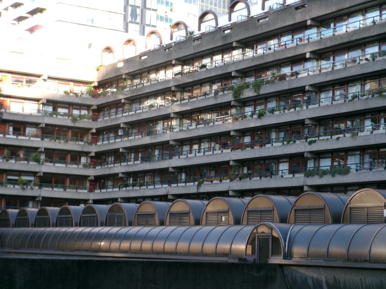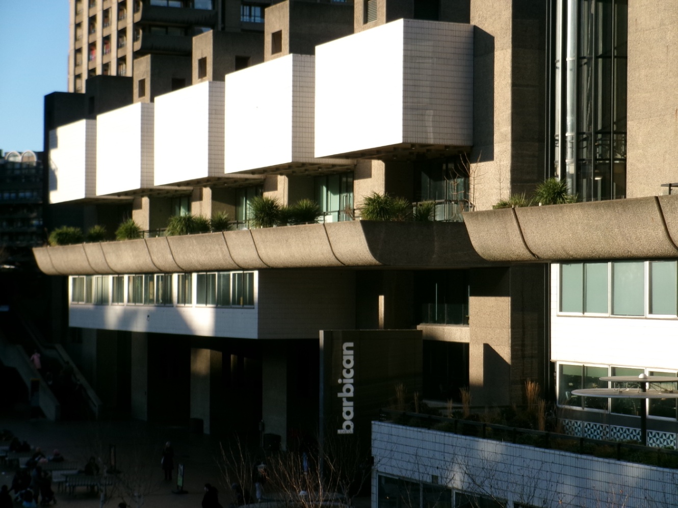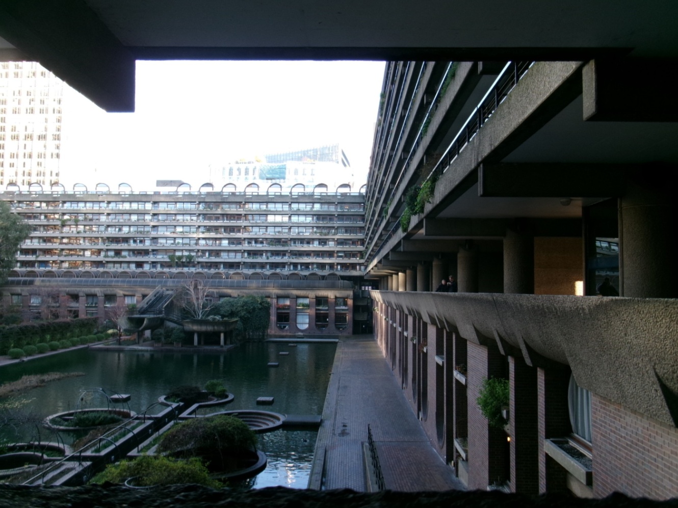 ビルやロンドンウォールの合間を散歩していると、バービカン・センターに到着しました!端的に言うと戦後に建てられた大規模な集合住宅コミュニティ?有名なコンサートホールなんかもある、とても大きな複合建築物です。