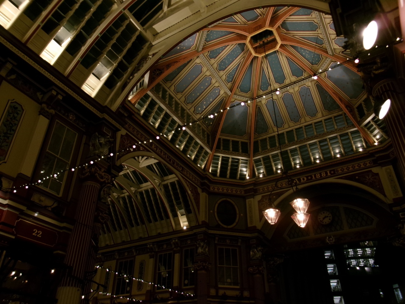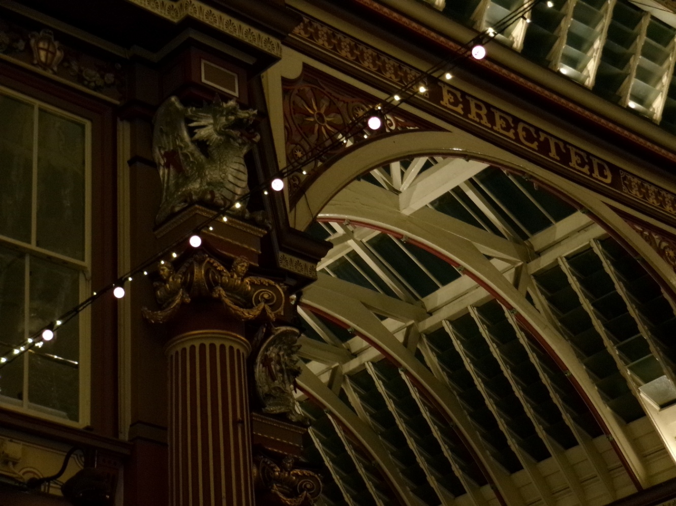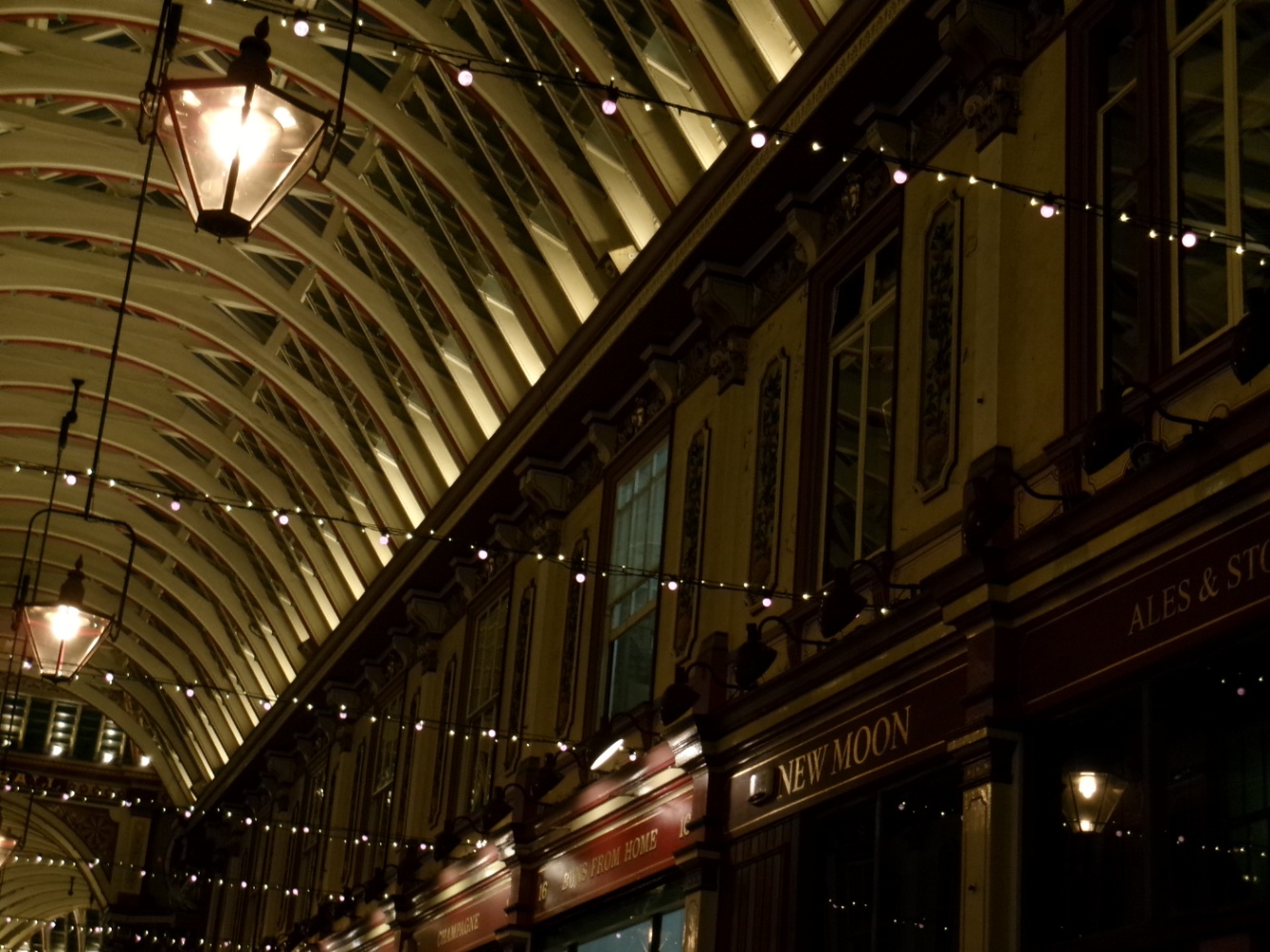 まずはレドンホール・マーケット。ハリーポッターではダイアゴン横丁に繋がる場所で有名。平日夜ということで仕事帰りのオフィスパーソンたちがパブで酒盛りをしているなかを歩く。
